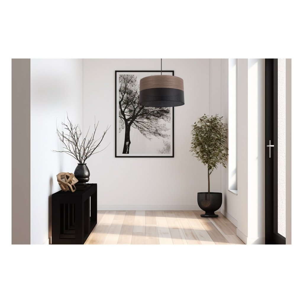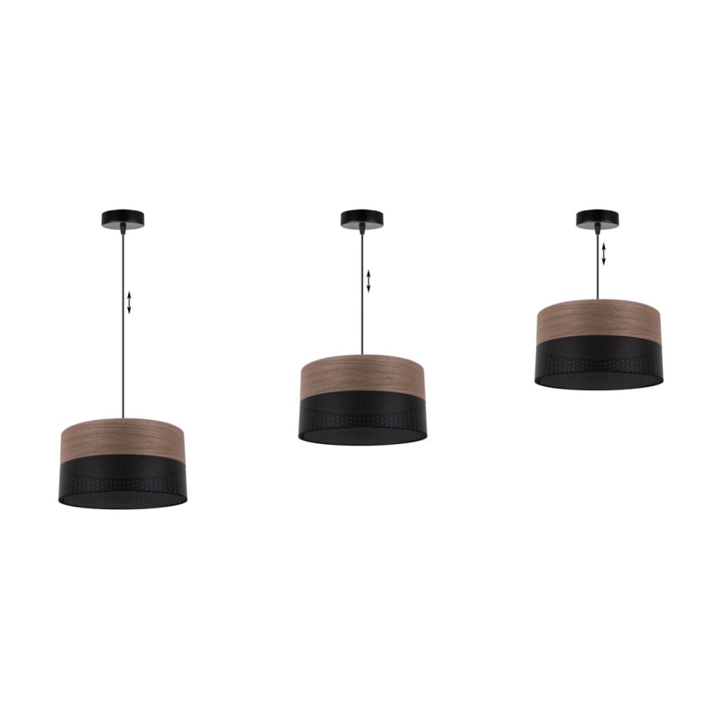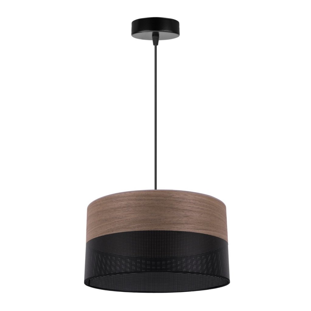 Závěsné svítidlo Wood, 1x hnědá ořechová dýha/černé plastové stínítko, (fi 30cm)