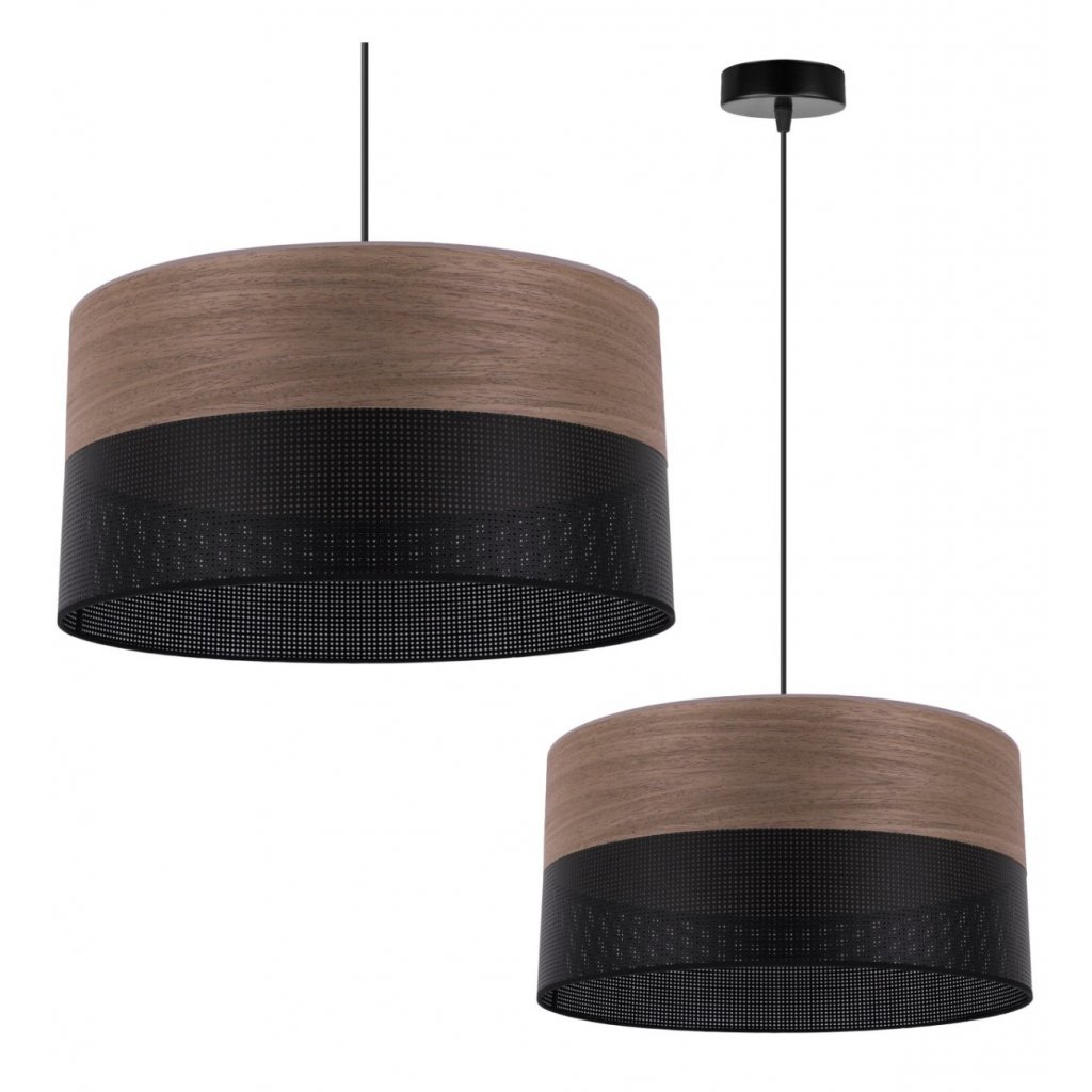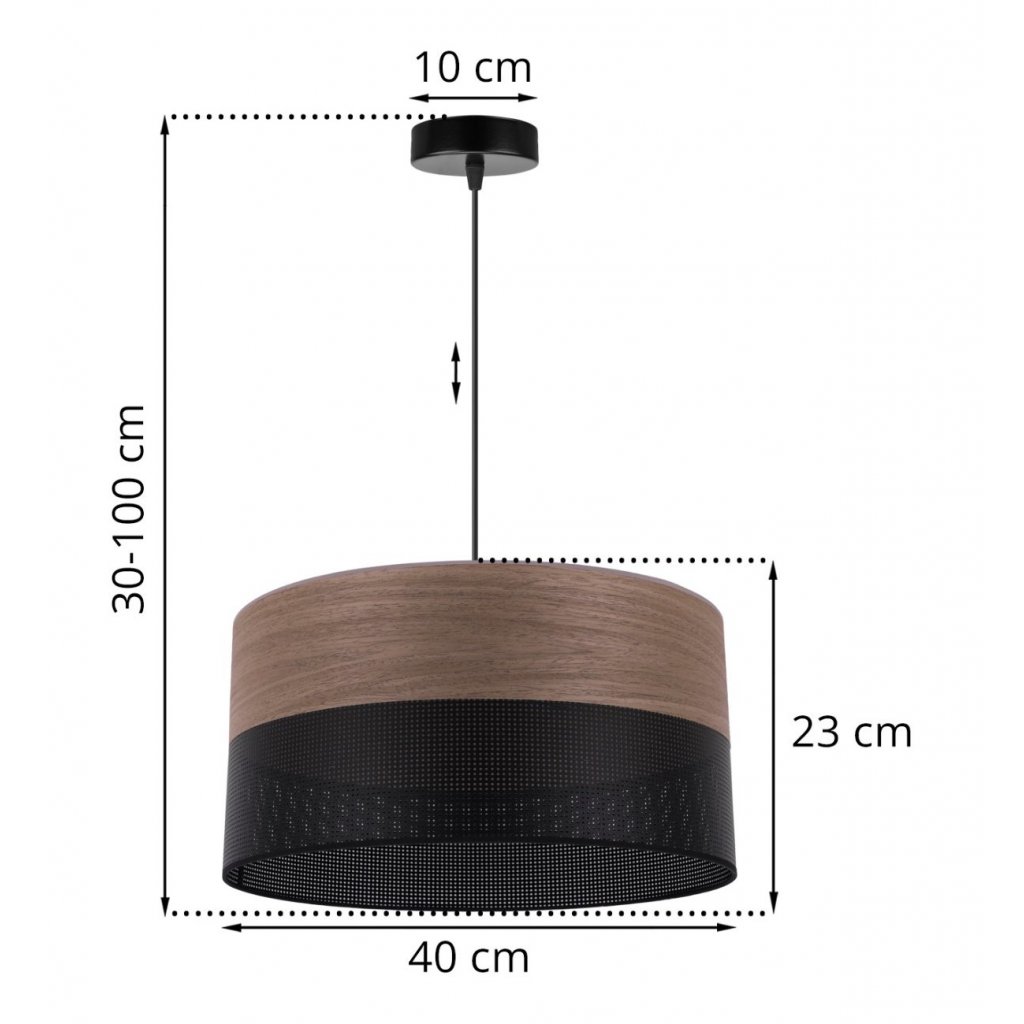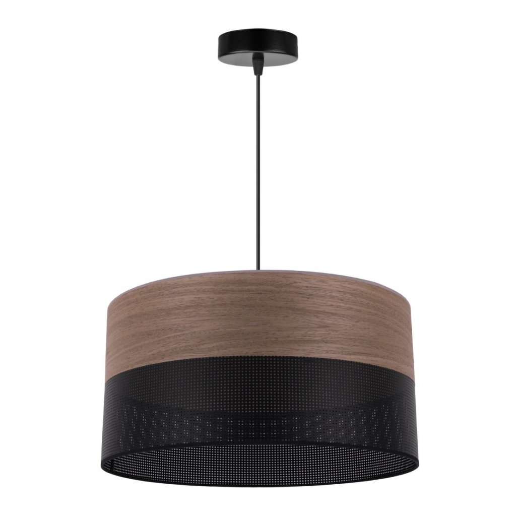 Závěsné svítidlo Wood, 1x hnědá ořechová dýha/černé plastové stínítko, (fi 40cm)