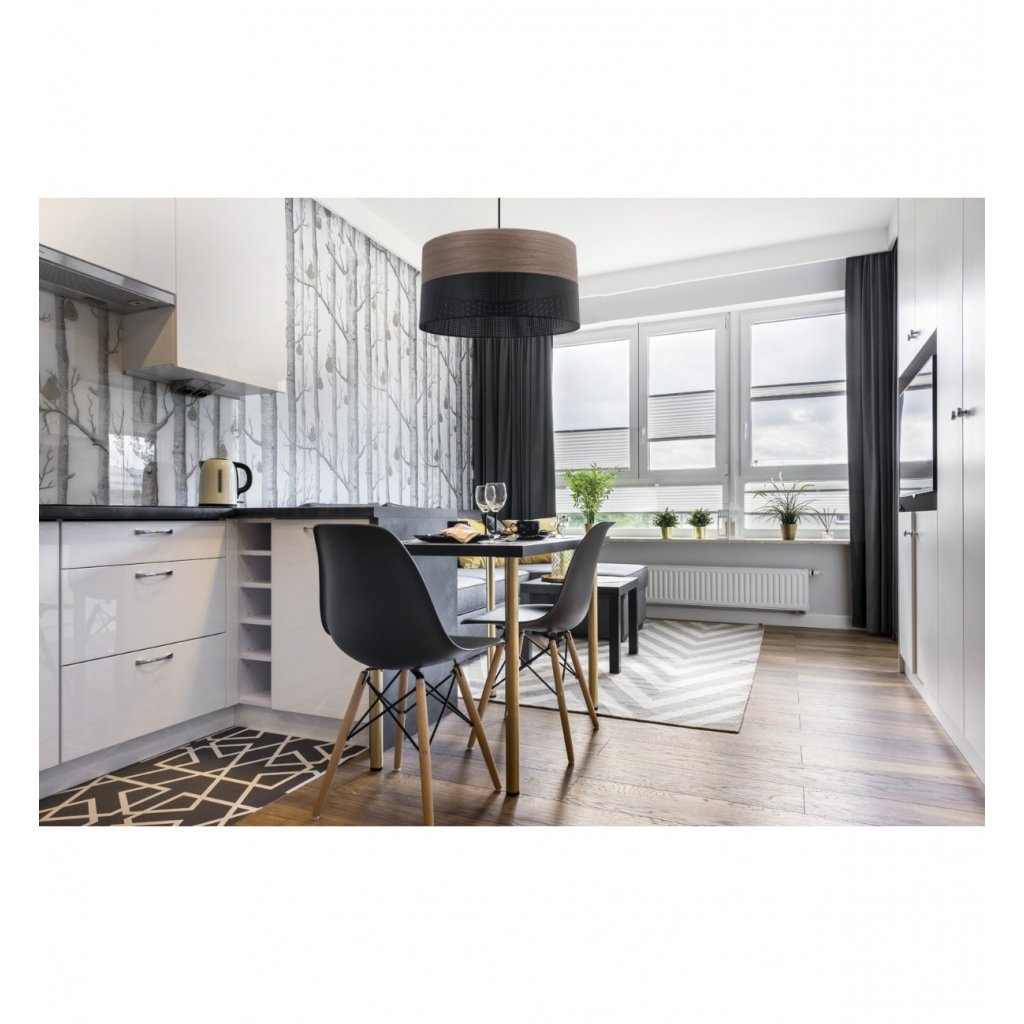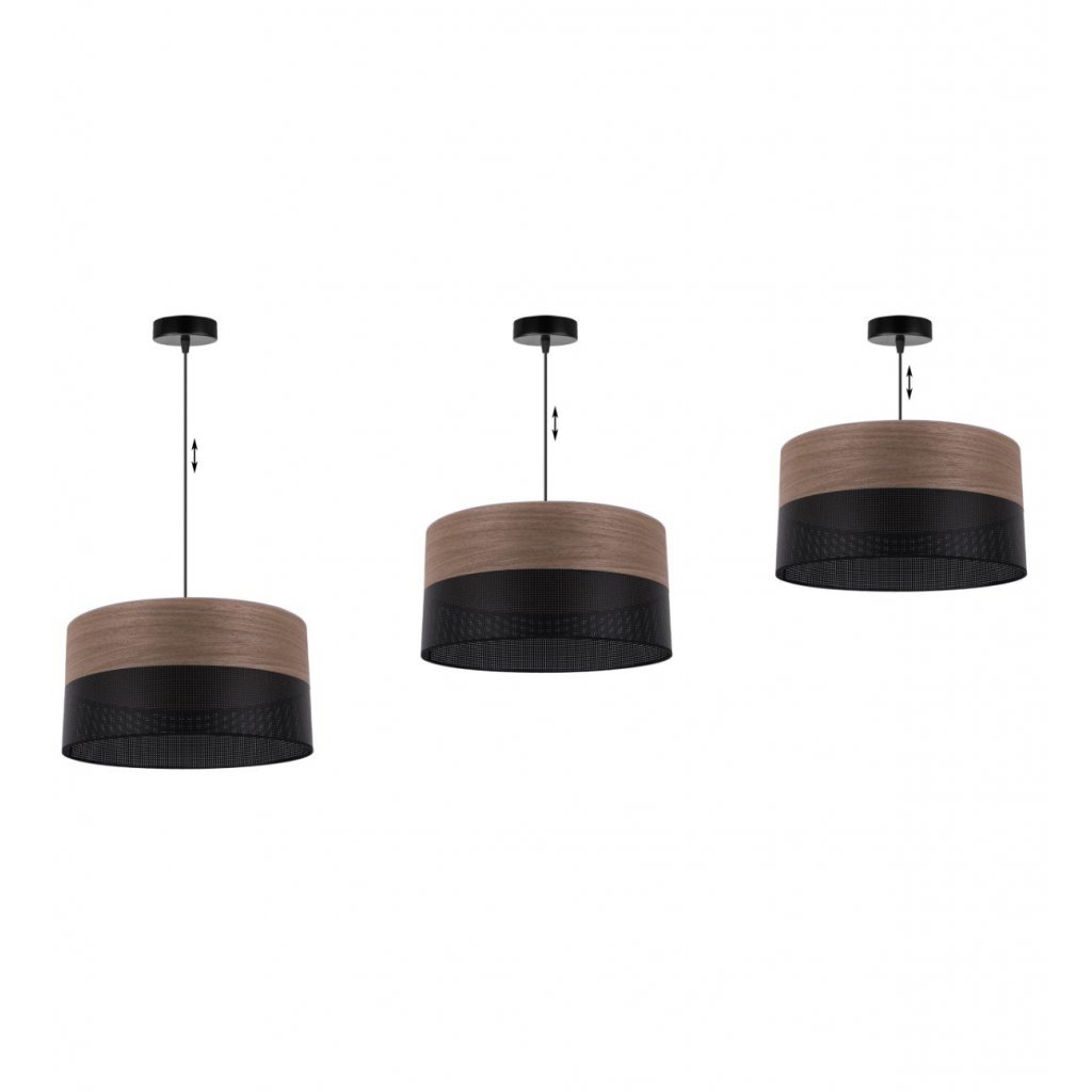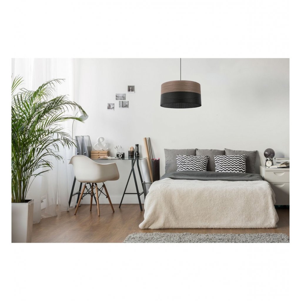 Závěsné svítidlo Wood, 1x hnědá ořechová dýha/černé plastové stínítko, (fi 40cm)
