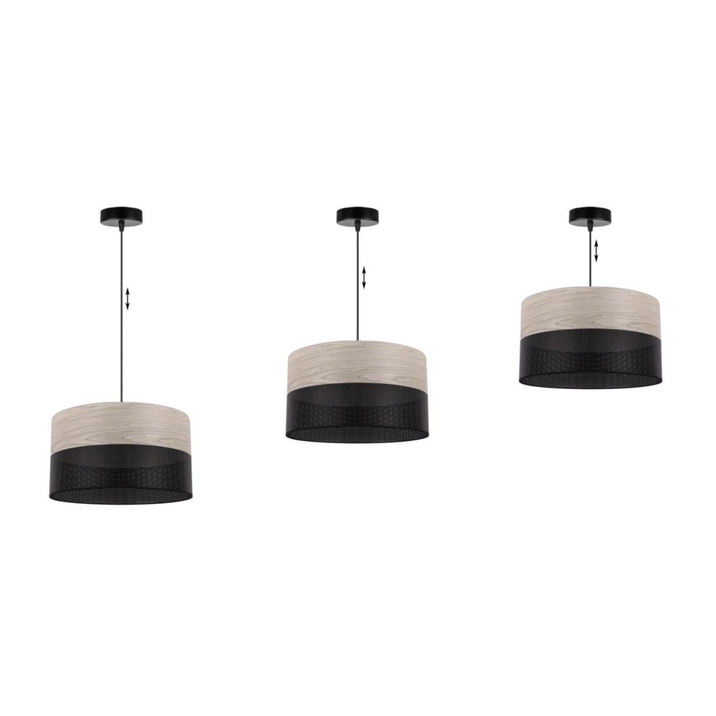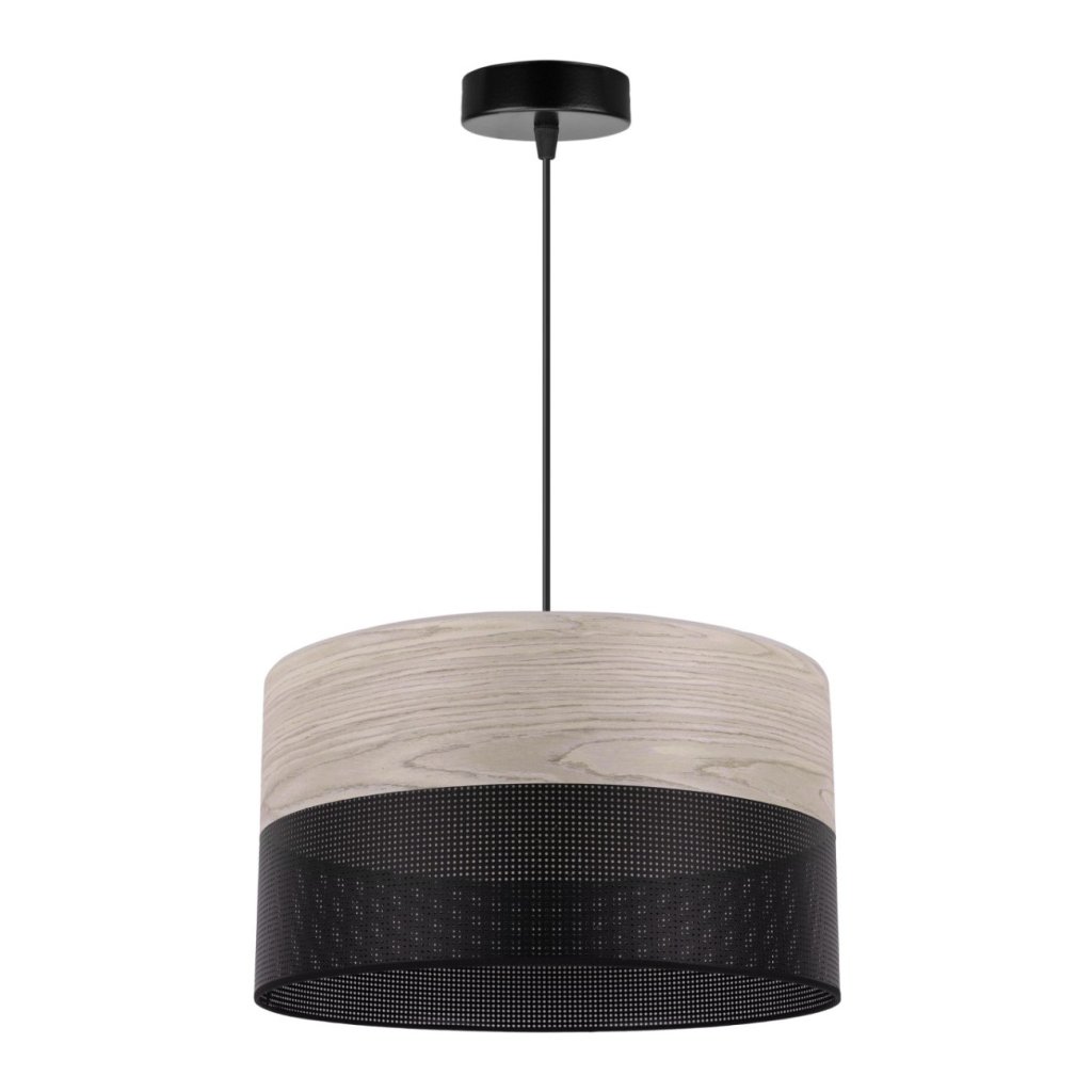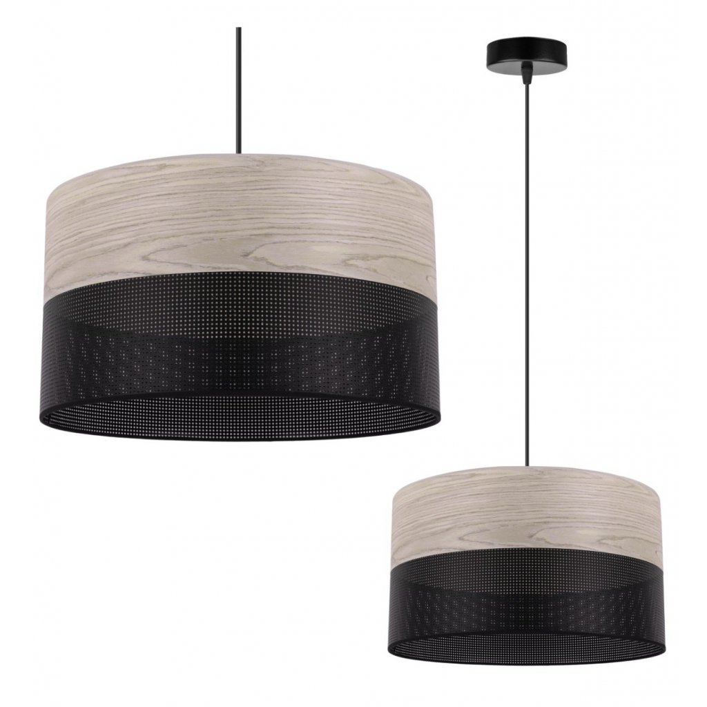 Závěsné svítidlo Wood, 1x světle béžová dubová dýha/černé plastové stínítko, (fi 35cm)