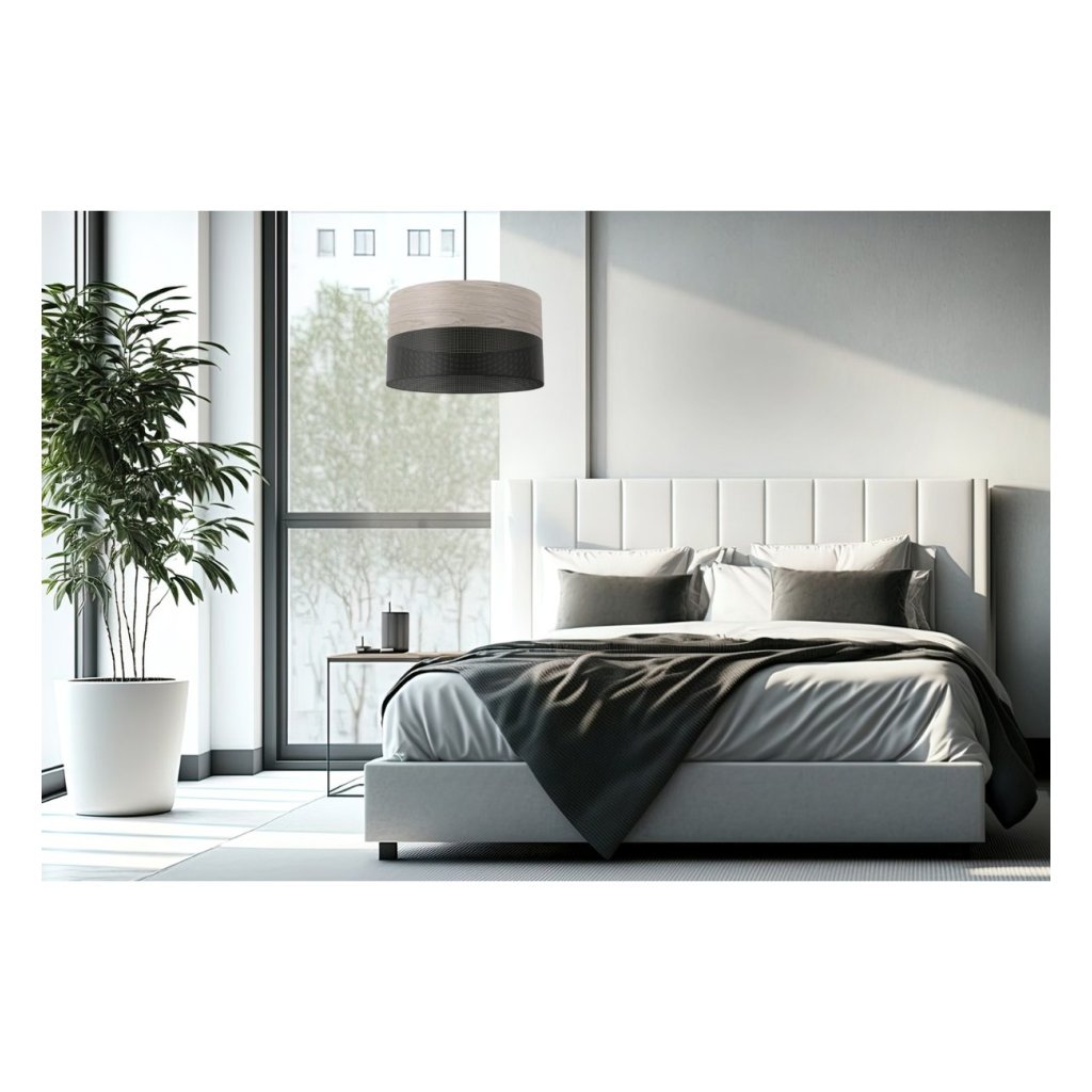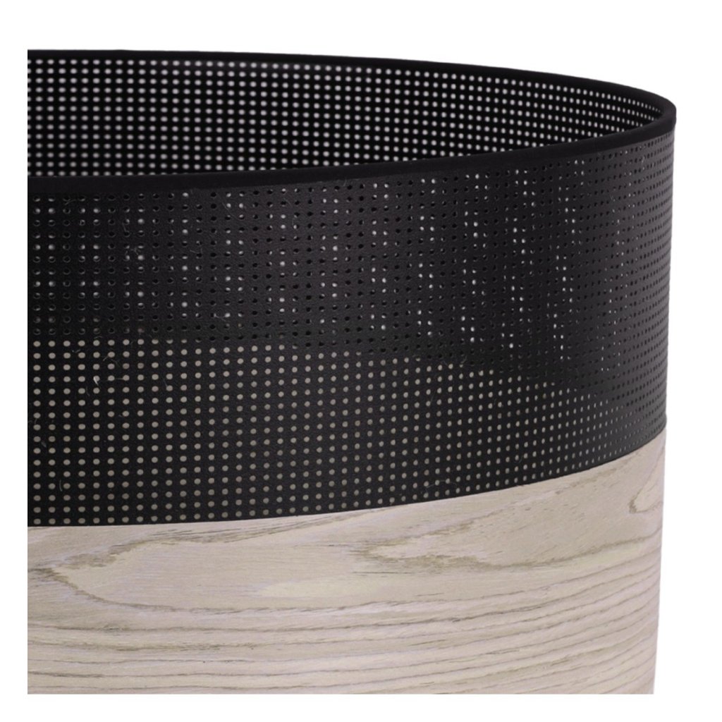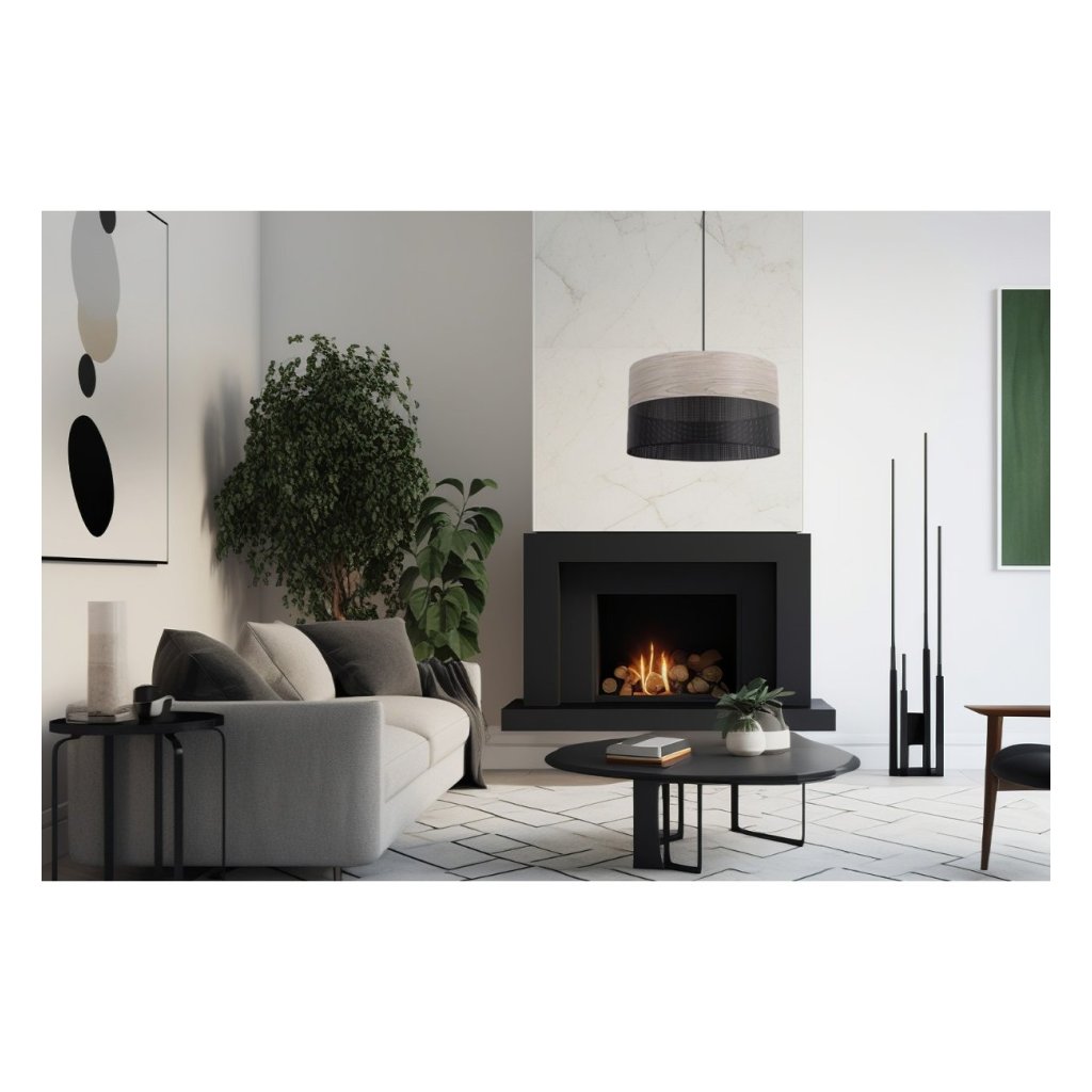 Závěsné svítidlo Wood, 1x světle béžová dubová dýha/černé plastové stínítko, (fi 35cm)