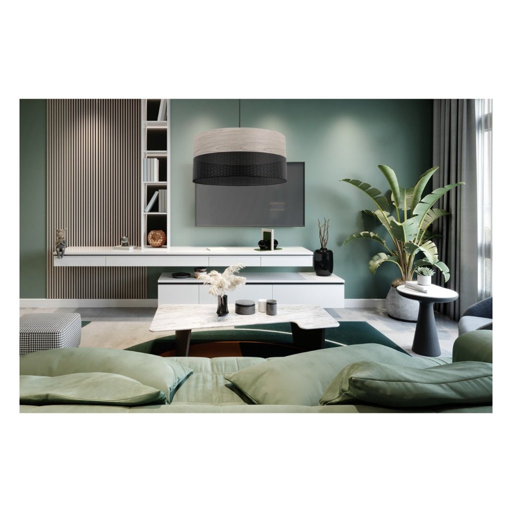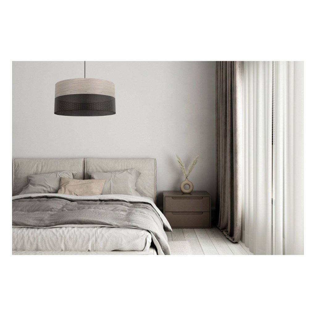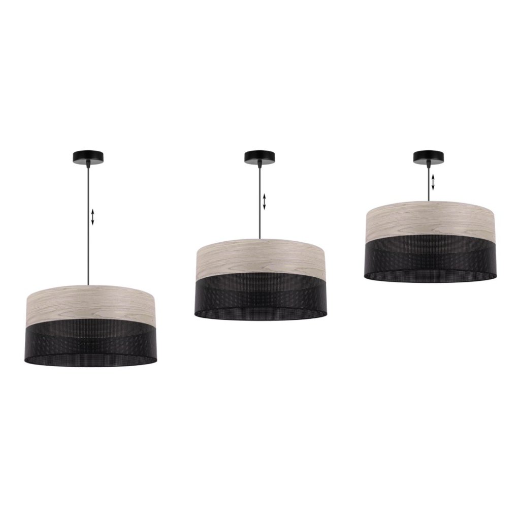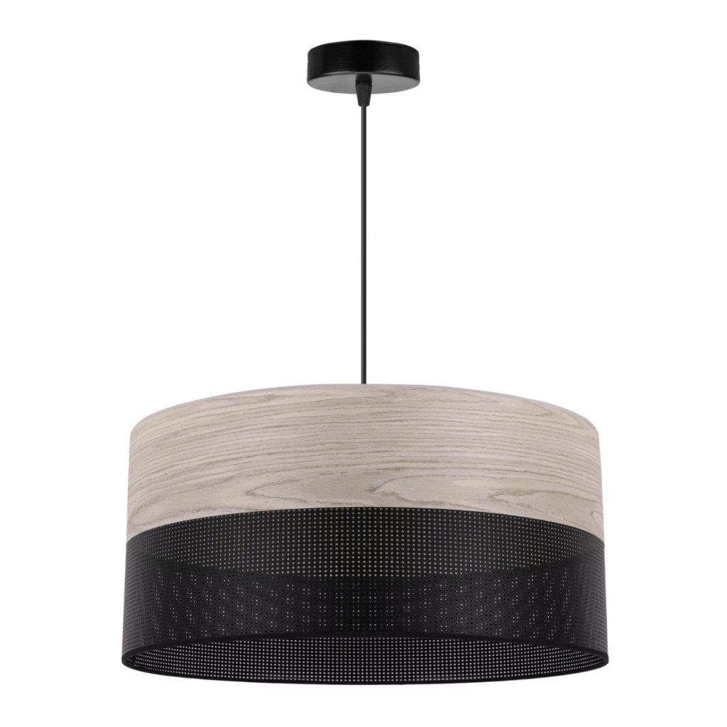 Závěsné svítidlo Wood, 1x světle béžová dubová dýha/černé plastové stínítko, (fi 44cm)