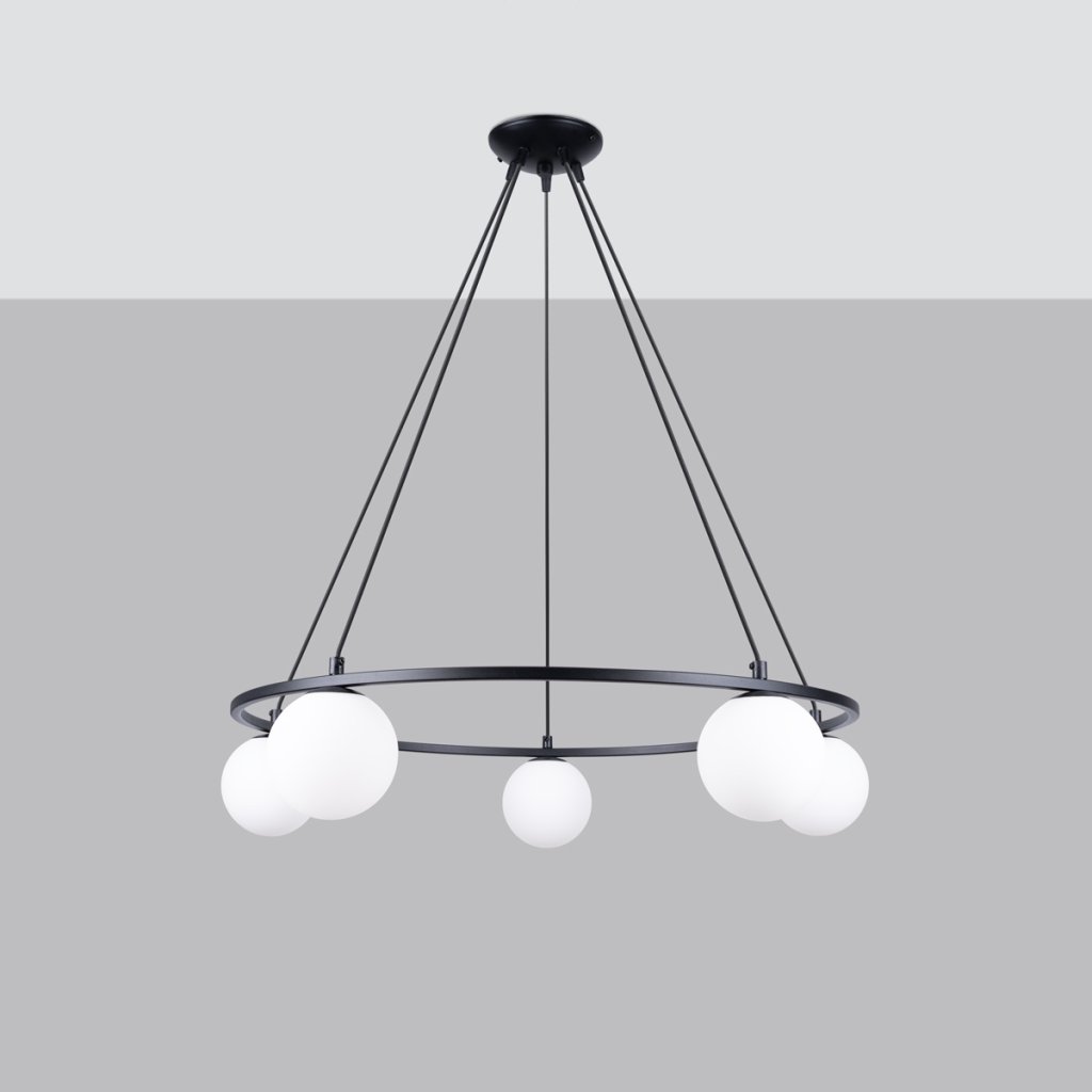 Závěsné svítidlo Yoli, 5x bílé skleněné stínítko, b