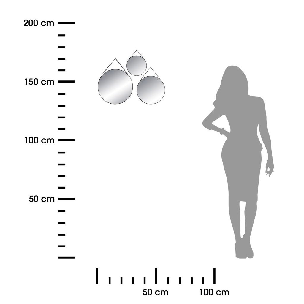 Zrcadlo je univerzálním doplňkem, který kromě praktické hodnoty bude také atraktivní dekorací na zeď. Výběrem této sady zrcadel můžeme libovolně upravovat jejich vzájemnou polohu a vytvářet tak neobvyklé kompozice. Kulatá zrcadla jsou zasazena do černých kovových rámů, což umocňuje vizuální efekt.Rozměry jednotlivých zrcadel: