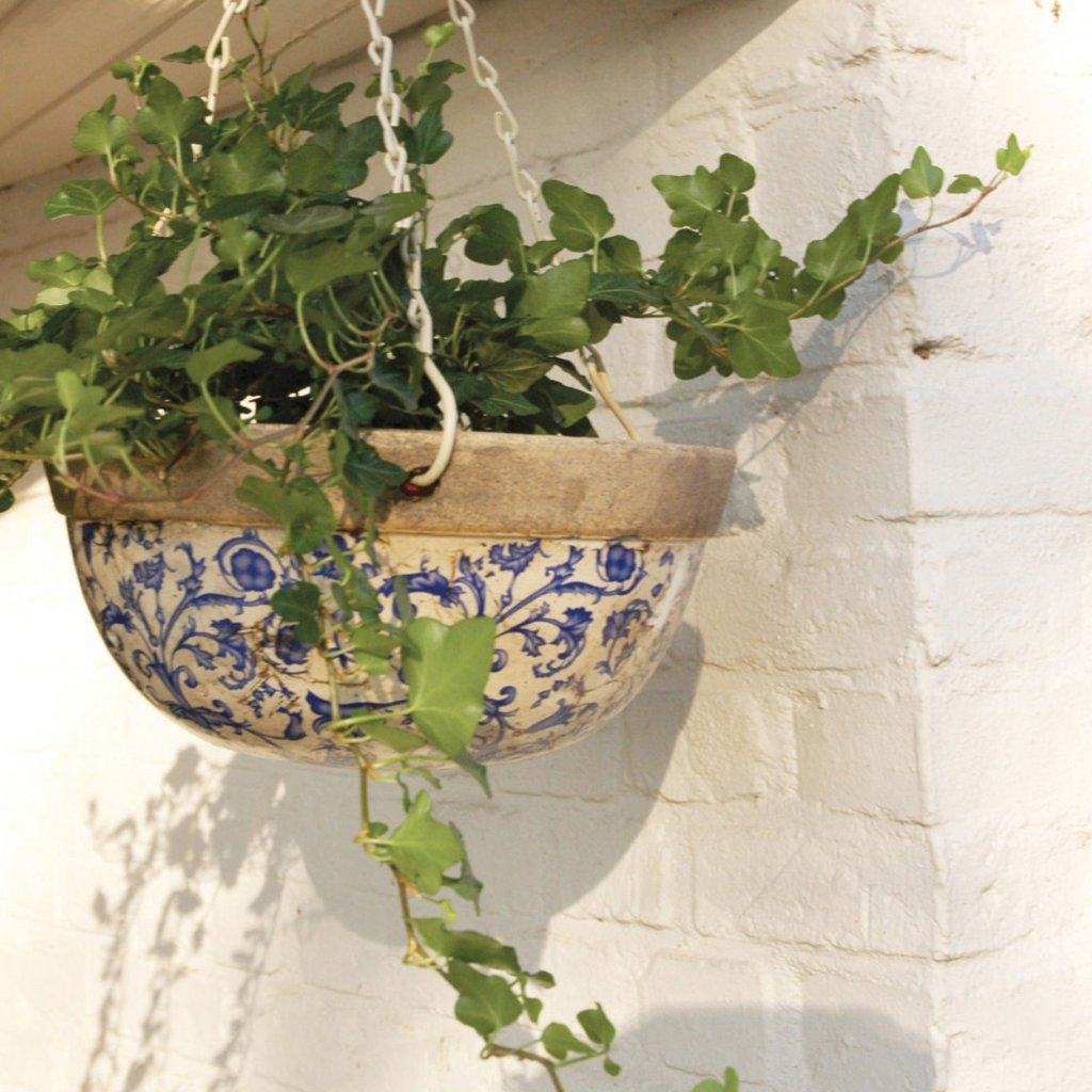 ZÁVĚSNÝ BETONOVÝ KVĚTINÁČ KELLY 11,5X25,5 CM BÍLÁ/MODRÁ