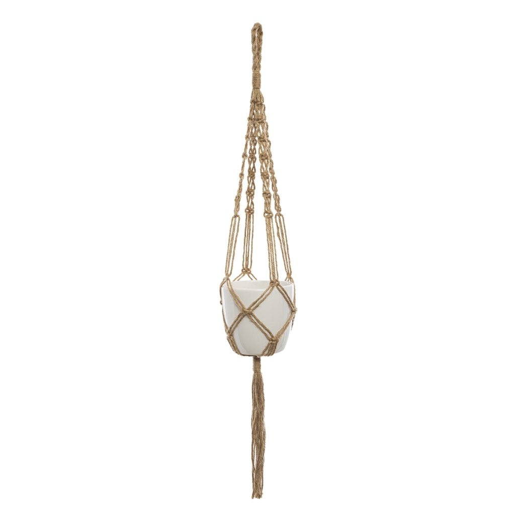 ZÁVĚSNÝ KERAMICKÝ KVĚTINÁČ JUTE 10,5X11,5 CM BÍLÁ/HNĚDÁ