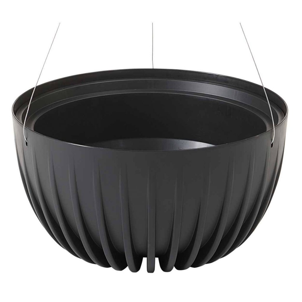 ZÁVĚSNÝ PLASTOVÝ KVĚTINÁČ STRIPPED ECO 16X30 CM ČERNÁ