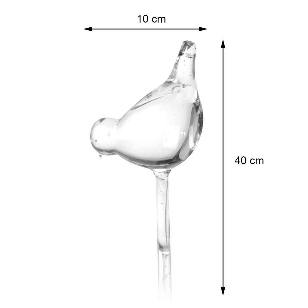 Sada 2 skleněných zavlažovacích koulí ve tvaru ptáčka je praktickým řešením pro dlouhodobé zavlažování pokojových a balkonových rostlin . Díky elegantnímu tvaru a transparentnímu provedení působí nenápadně, ale zároveň dekorativně. Zavlažovací koule jsou ideální během dovolených nebo delší nepřítomnosti – rostlinám dodávají vodu až po dobu dvou týdnů . Jejich použití je jednoduché: stačí vytvořit volné místo v půdě, úplně naplnit kouli vodou a vložit ji svisle do květináče . Skleněné zpracování zaručuje hygienu a opakované používání bez rizika poškození rostlin. Skvělá pomůcka pro všechny, kteří chtějí mít o své květiny postaráno i bez každodenní péče.