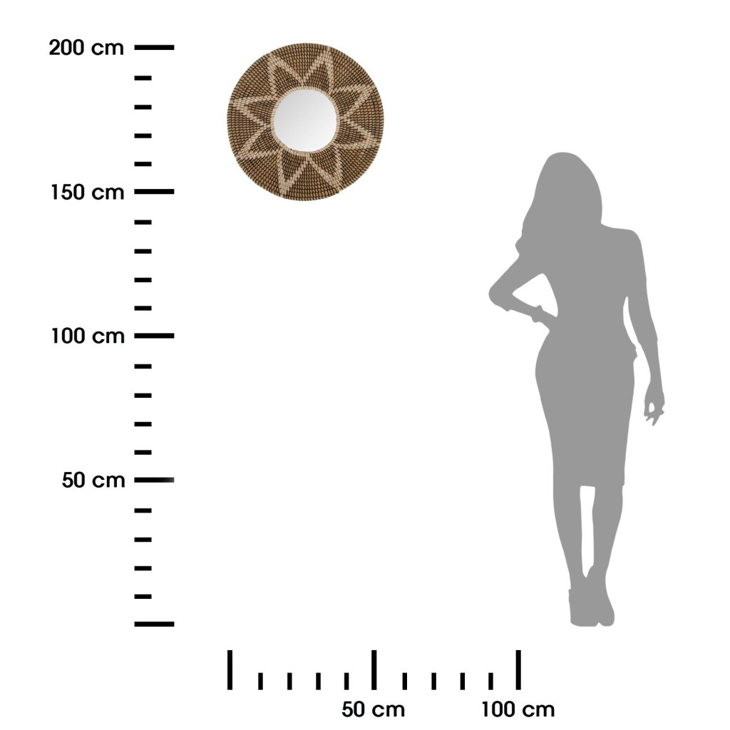 Zrcadlo Barbara o průměru 52 cm je jedinečným doplňkem, který kombinuje přírodní materiály , ručně zpracovanou řemeslnou práci a stylový etno design . Kulatá rámová konstrukce je upletená z pravé mořské trávy , která vytváří efekt paprsků hvězdy a dodává zrcadlu výrazný dekorativní vzhled.