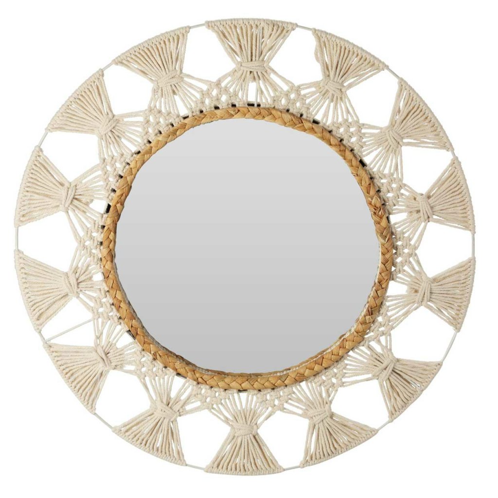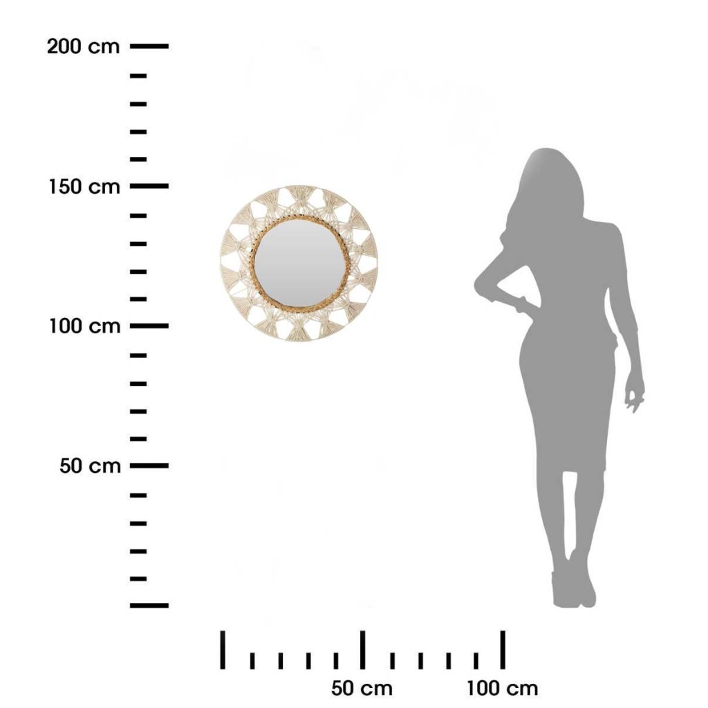 Dekorativní zrcadlo, které bude etnickým akcentem ve vašem interiéru. Má poutavý pletený rám, který ocení zejména milovníci boho stylu. Zrcadlo s tkaným rámem odkazuje na styl přírodních doplňků, které místnosti dodají útulný vzhled. Zrcadlo opticky zvětší prostor, díky čemuž se místnost zdá být větší a prostornější, což se hodí zejména v malých interiérech. Nástěnné zrcadlo ve stylu boho může být jedinečnou ozdobou každé místnosti v domě: obývacího pokoje, ložnice, předsíně či koupelny.Průměr: 55 cm