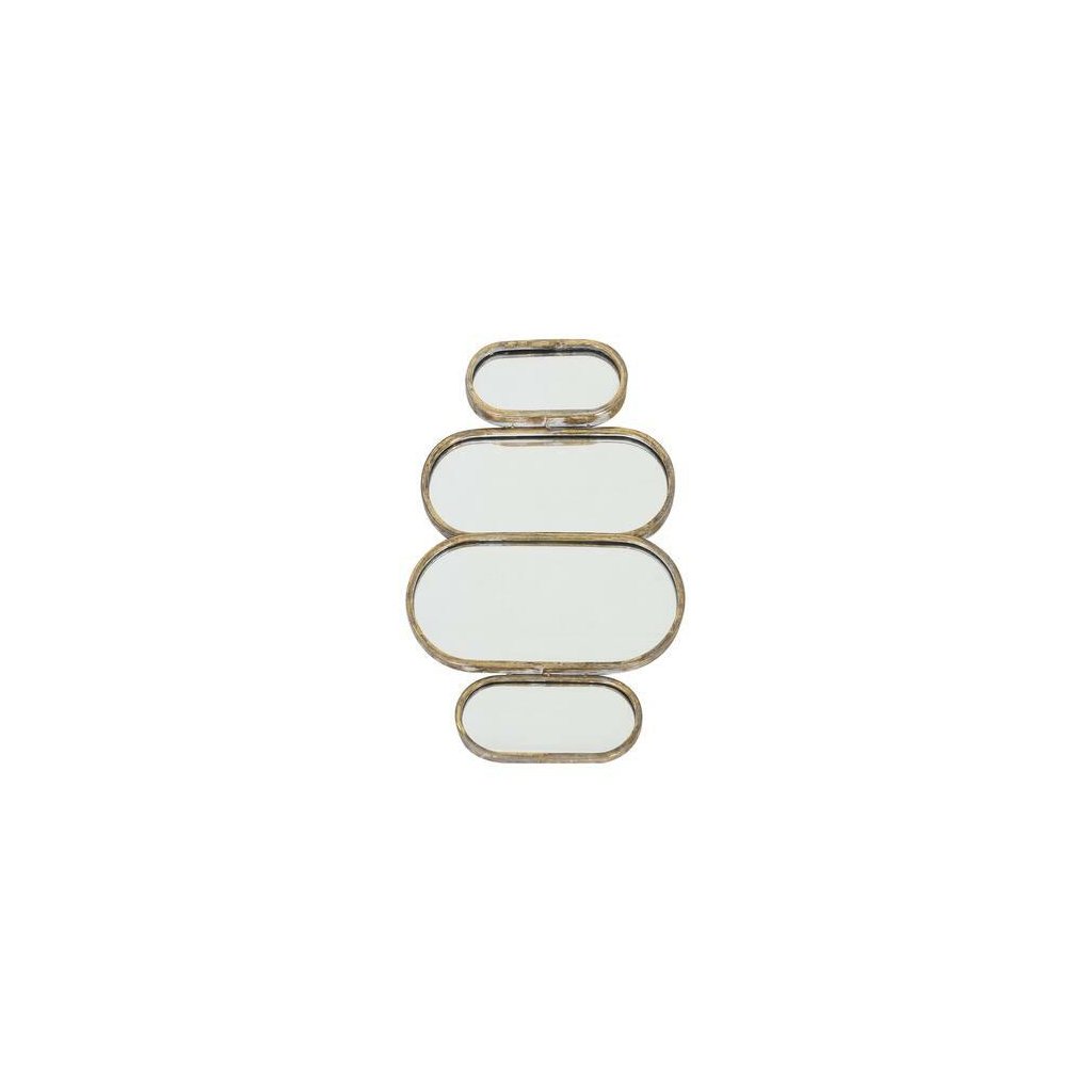 Nástěnné zrcadlo Carmen se zlatou kovovou konstrukcí a čtyřmi oválnými zrcadlovými segmenty představuje jedinečný dekorativní prvek , který zaujme svým neobvyklým tvarem a propracovaným zpracováním. Kombinace klasické zlaté barvy a moderního uspořádání zrcadel vytváří elegantní vizuální efekt, který oživí každou zeď.