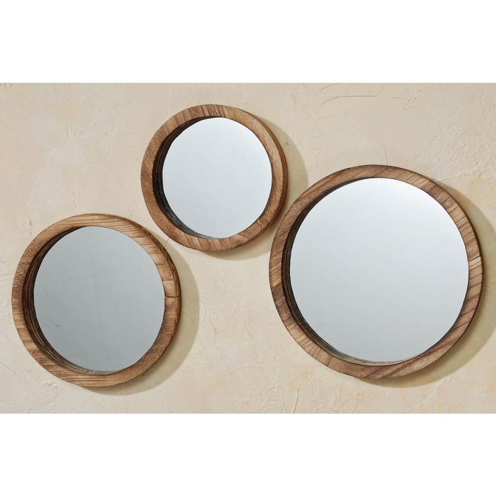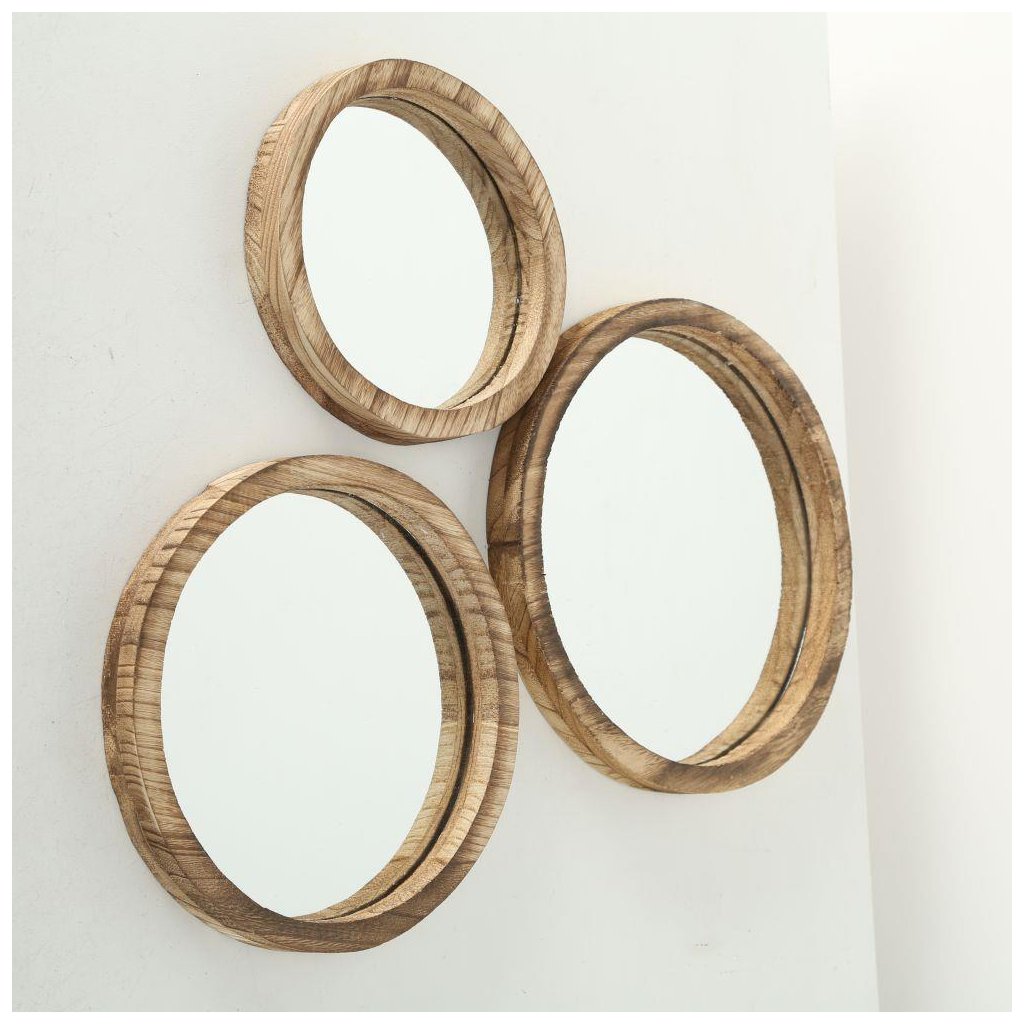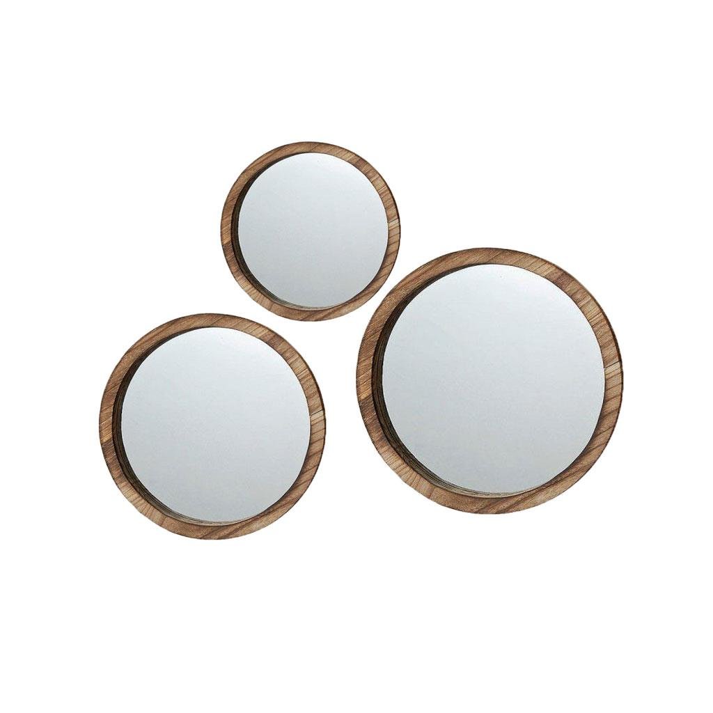 Sada tří kulatých zrcadel Jones v hnědých dřevěných rámech nabízí stylový a zároveň přírodní doplněk do vašeho interiéru. Díky různým velikostem lze zrcadla rozmístit ve variabilních kompozicích a vytvořit tak originální nástěnnou dekoraci .