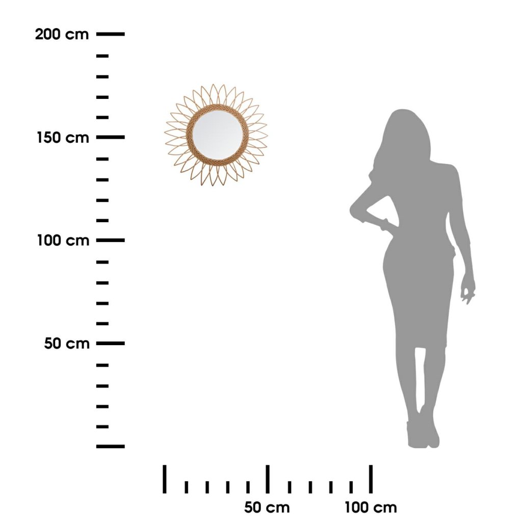 Kulaté nástěnné zrcadlo v proutěném rámu v přírodní barvě. Praktický doplněk do obývacího pokoje, ložnice či předsíně, který bude zároveň originální dekorací. Vyrobený z přírodního materiálu a zajímavý design činí z tohoto modelu ideální doplněk zejména do interiérů zařízených v boho nebo skandinávském stylu.Průměr: 50 cm